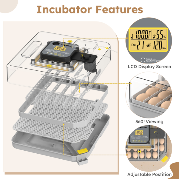 Home > 48 Egg Incubator For Hatching Chicken, Duck, Quail & Parrot Eggs - Automatic Egg Turning, Humidity Control & Water Serving -360 Degrees Clear Vie