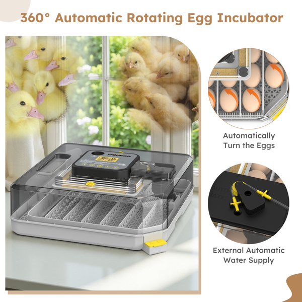 48 Egg Incubator For Hatching Chicken, Duck, Quail & Parrot Eggs - Automatic Egg Turning, Humidity Control & Water Serving -360 Degrees Clear Vie