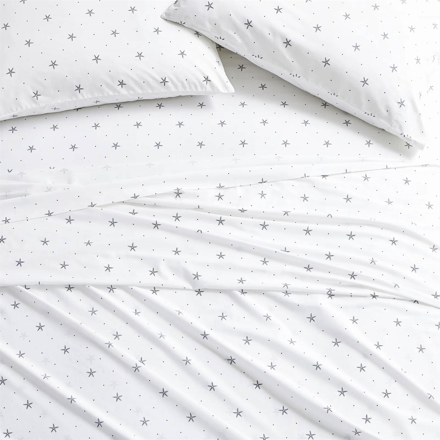Add a touch of excitement to your bedding ensemble with the Queen size Coastal Beach Starfish White Navy Red 100-Percent Cotton Sheet Set. Sheets and coordinating pillowcases utilize the classically cool nautical windowpane cotton percale sheeting layers in a tonal navy and chambray palette ground. The fitted sheet has elastic on all sides which ensures a perfect fit and prevents the sheet from slipping off of the mattress. Machine wash, cold, do not bleach, Tumble dry, gentle and low heat, Iron, low.