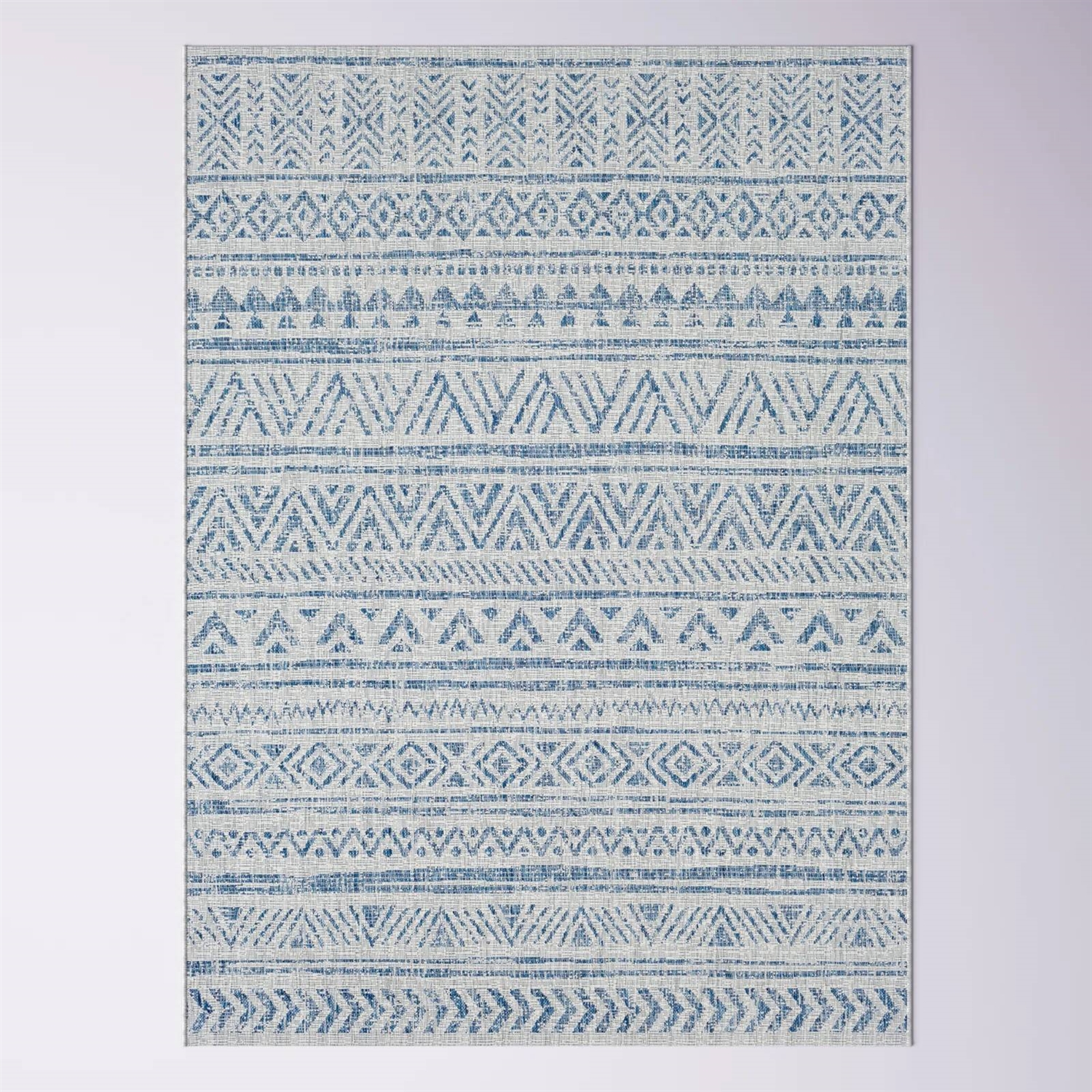 4 ft. x 6 ft. Blue Grey Chevron Coastal Boho Style Indoor Outdoor Area Rug