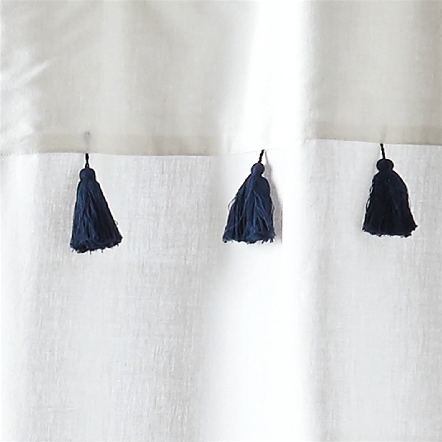 Tassel accents add a lively vintage element to this 72-inch Navy and White Stripes Cotton Shower Curtain. Add a modern taste of coastal living to your shower and soak in the easy, breezy lifestyle with a stripe shower curtain. Slim, sophisticated stripes race across the surface of this shower curtain. Vintage tassels dress the hem for a playful charm. Available colors to match your resort style.