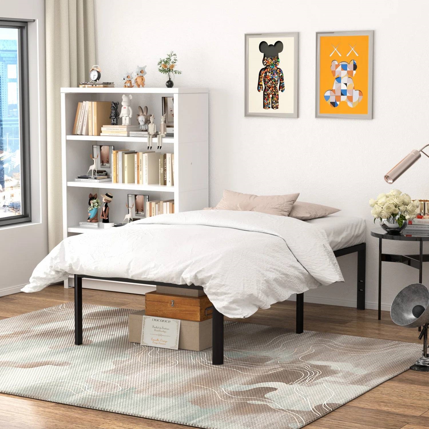 Twin 18-inch Rounded Edge Corners Metal Bed Frame with Under-bed Storage Space Twin 18-inch Rounded Edge Corners Metal Bed Frame with Under-bed Storage Space Twin 18-inch Rounded Edge Corners Metal Bed Frame with Under-bed Storage Space Twin 18-inch Rounded Edge Corners Metal Bed Frame with Under-bed Storage Space