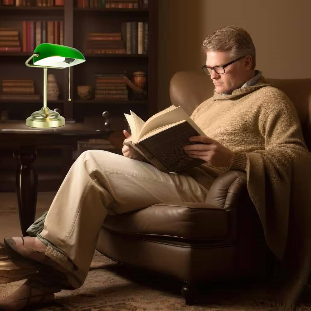 This Classic Brass Bankers Lamp Desk Light Table Lamp with Green Glass Shade features an emerald glass shade and durable metal base for a timeless antique style. A rotatable lamp shade allows for an adjustable beam angle and a pull cord provides easy on/off functionality. The lamp's bright light is soft on the eyes and well suited to use in a wide variety of tasks. It would be a perfect choice as a lighting fixture in your home, office, bedroom or studio. Its antique design is sure to give your space a nice retro touch. Newhouse Lighting is focused on providing their customers with sensible, stylish, and efficient LED lighting products. They provide lighting of the highest quality while using just a fraction of the energy that outdated incandescent and halogen lamps use. By reducing energy consumption, these LED lamps can save you costs on your electric bill and help reduce carbon dioxide emissions.