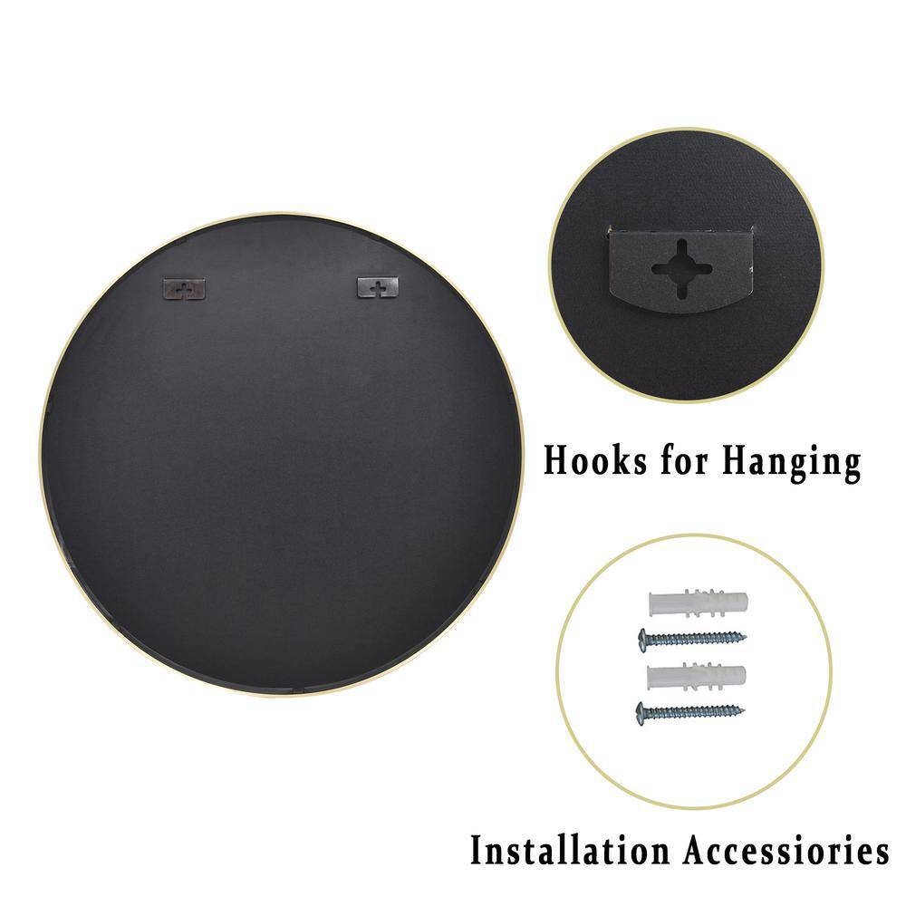 • Stylish Modern Design: Elevate your home decor with a sleek and contemporary round wall mirror featuring a chic gold metal frame