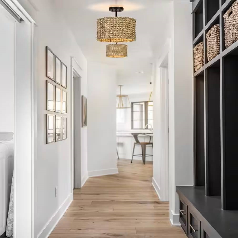 Nothing adds warmth and a casual inviting vibe like this Bohemian 13.6-inch Round Rattan Drum 2-Light Ceiling Light - Semi-Flush Mount. This flush mount is meticulously hand woven of natural seagrass and rattan in a drum silhouette. Inside, a 2-light cluster in matte black casts generous light and creates interesting shadow patterns on the walls of your entry, dining room or bedroom. This collection can work with a variety of decors, from boho, bohemian, coastal, eclectic, farmhouse to traditional styling, which is an ideal selection for hallway, entryway, stairway, door way, or a foyer to bring warmth to a living room, dining room or bedroom.
