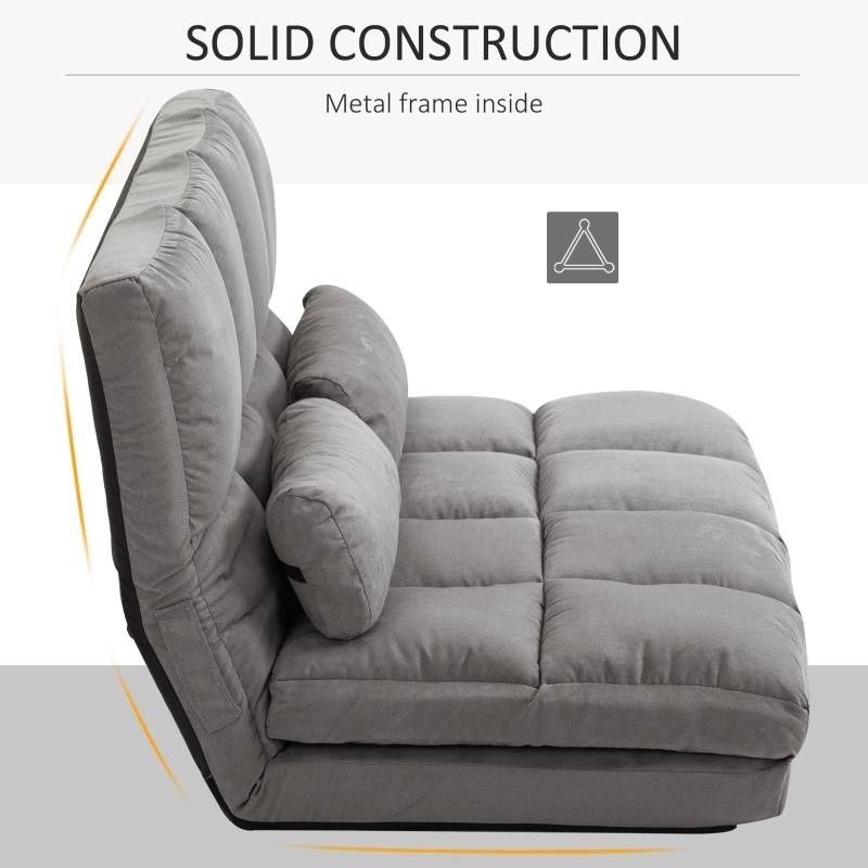 • Dark Grey Polyester Suede Fabric Floor Sofa Bed Recliner with Adjustable Back