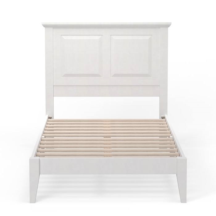 This Twin Size Retro Solid Oak Wooden Platform Bed in White with prominent headboard is a must have for any bedroom! Inset panels and retro molding that adds refined elegance to any bedroom or guest room. It is crafted from solid oak, a naturally hard and durable wood. Platform bed sits on straight and slightly tapered legs that raise this bed almost 8 inches off the floor. This system of slats eliminates the need for a box spring and works best with any standard mattress (recommended 10 inches of thickness). Assembly is required.