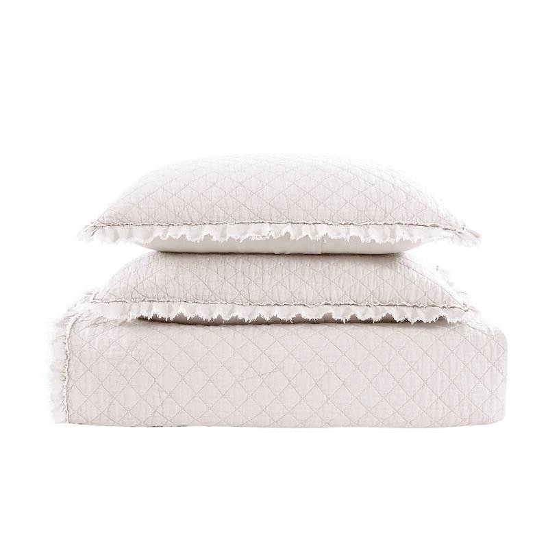 Create a casual and contemporary oasis with this Farmhouse Reversible Microfiber Quilt Bedspread Set. Crafted of stone-washed microfiber polyester it is lightweight and super soft. The quilt and shams feature a diamond quilted pattern with a frayed edge ruffle fringe.