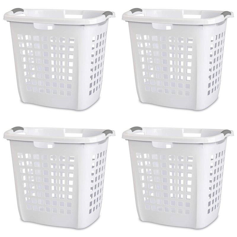 Make laundry day a breeze with these Set of 4 White Laundry Hamper Baskets. These clothe hampers effectively combine the valued features of portability and capacity all in one. This package includes 4 laundry hampers. Easily carry dirty clothes to the washer and clean clothes to your closet with these plastic laundry hampers. Lifting large loads of laundry is made easier and more comfortable because of the sturdy construction and reinforced rim. These clothes hampers have integrated handles on all 4 sides for easy lifting and carrying through narrow doorways, hallways, and up and downstairs.