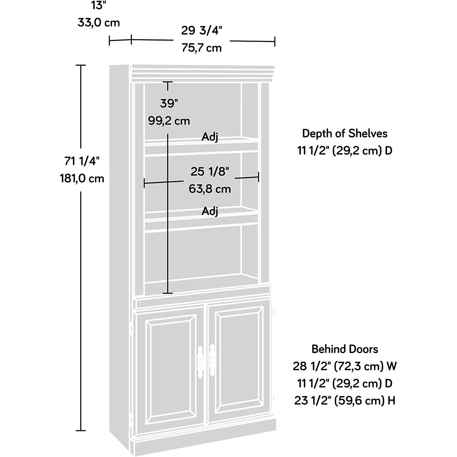 • Dimensions: 13 inches x 29.3 x 71.2 inches (DxWxH)