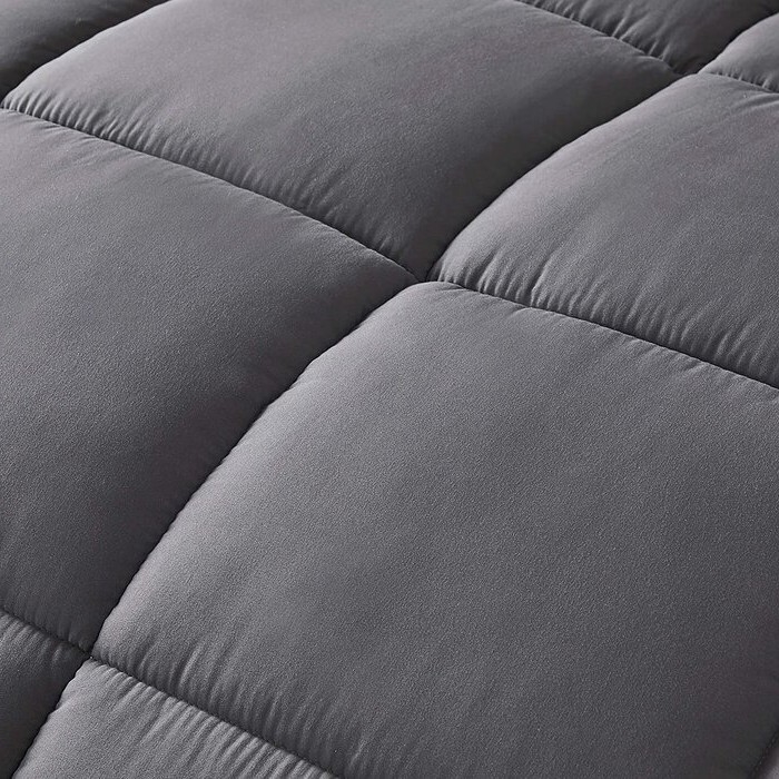 Give yourself peace of mind and sleep in pure comfort each and every night with the Queen Size Reversible Microfiber Down Alternative Comforter Set in Grey. A lightweight and breathable comforter with year-round use, this comforter is made with a soft microfiber polyester fabric and filled with poly fibers. The seams are stitched with double-needle piped edges for enhanced strength which create walls between top and bottom layers, preventing the filling from escaping as well as an aesthetically pleasing appearance. For easy home care, simply machine washes cold and tumble dry low. The comforter remains wonderfully soft and fluffy with no fade or shrinkage.