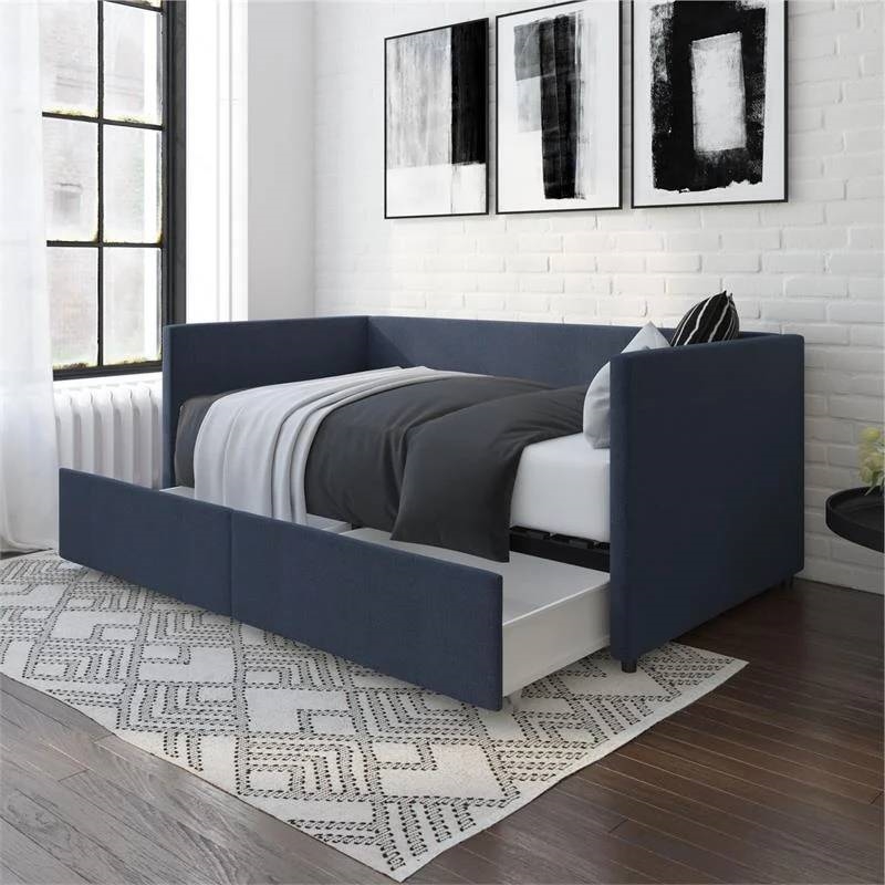 Navy Blue Linen Upholstered Daybed with Pull-Out Storage Drawers Navy Blue Linen Upholstered Daybed with Pull-Out Storage Drawers Navy Blue Linen Upholstered Daybed with Pull-Out Storage Drawers Navy Blue Linen Upholstered Daybed with Pull-Out Storage Drawers Navy Blue Linen Upholstered Daybed with Pull-Out Storage Drawers