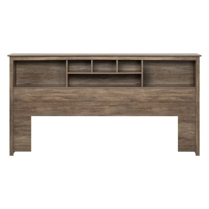 • King size Bookcase Headboard in Drifted Gray Wood Finish