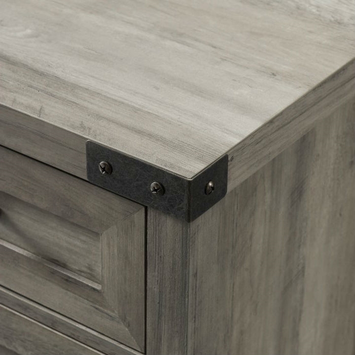 This 30-inch Rustic Farmhouse Barn Door Accent Storage Cabinet Grey Wash is full of closed storage options since it comes with two-doors and a drawer with telescoping metal drawer glides. Behind the doors there is an adjustable shelf. The exposed hardware and handles feature an antique bronze metal finish that enhance the rustic tone of this storage unit.