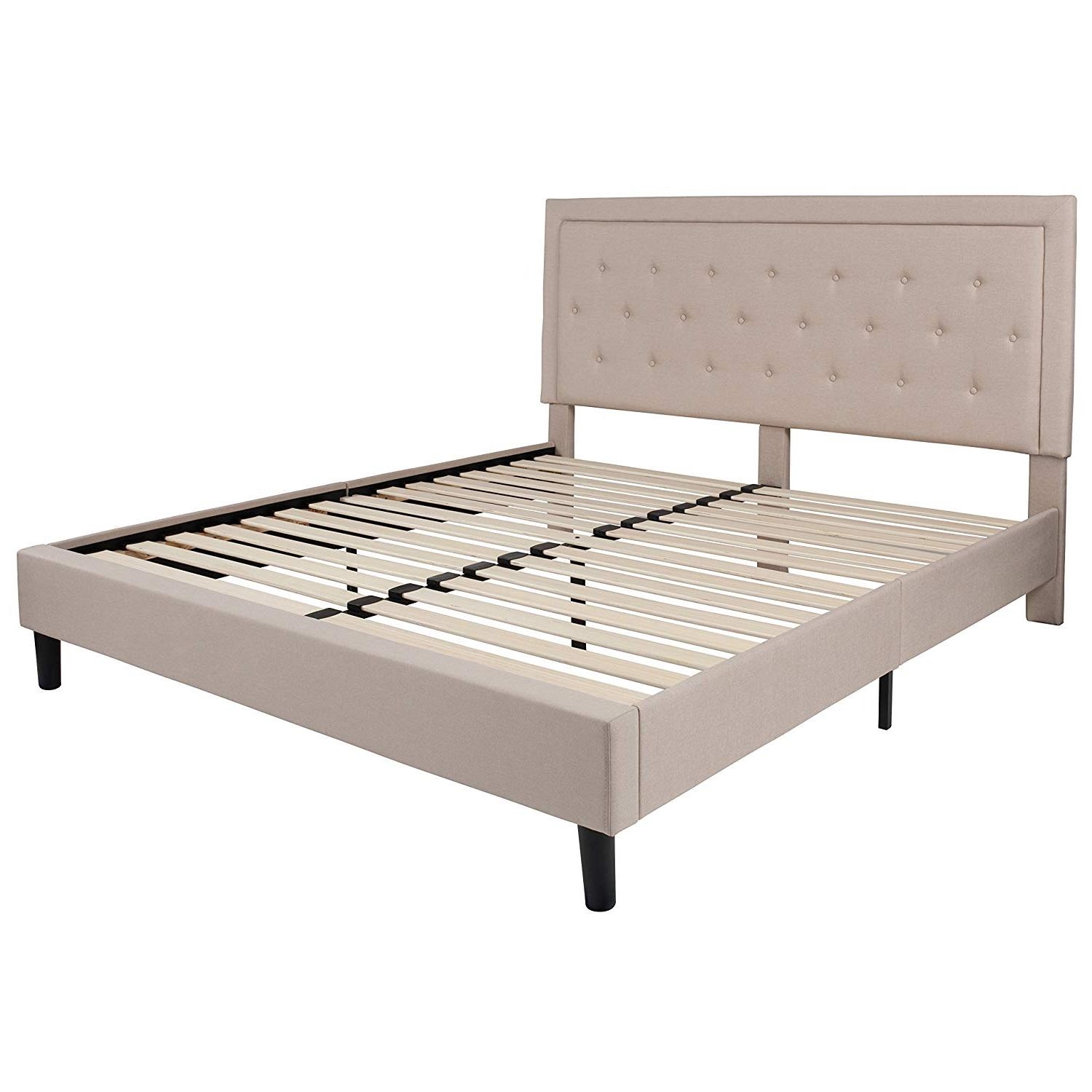 King Beige Upholstered Platform Bed Frame with Button Tufted Headboard King Beige Upholstered Platform Bed Frame with Button Tufted Headboard King Beige Upholstered Platform Bed Frame with Button Tufted Headboard