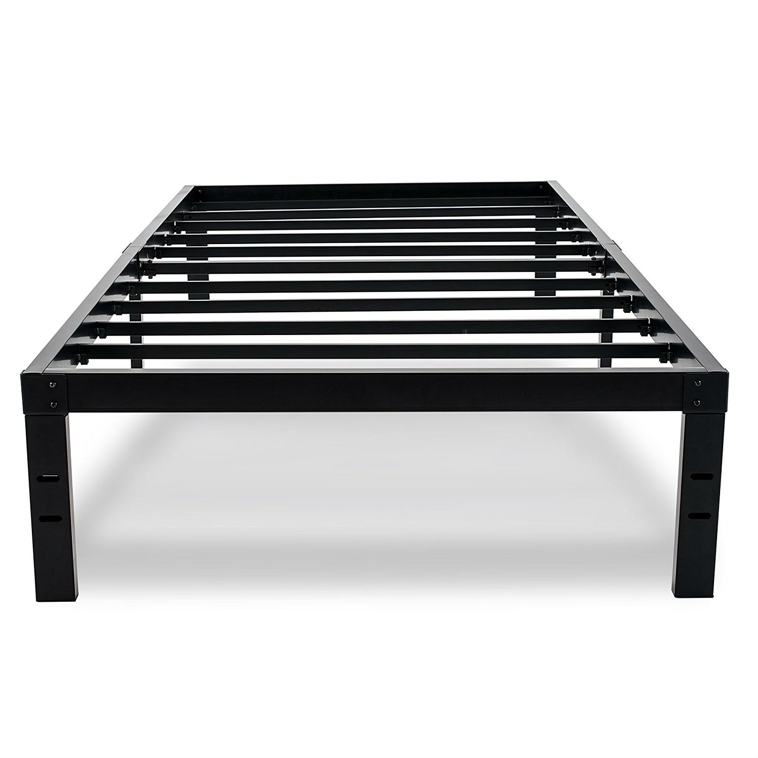 This Twin XL College Dorm Heavy Duty Black Metal Platform Bed Frame would be a great addition to your home. Heavy duty bed frame: sturdy steel slates support heavier duty and doubles the mattress' life expectancy, and no need to worry about slats breaking or sagging, extra reinforced leg structure makes bed frame foundation free from squeaking or sliding. Quick installation steel bedstead: it takes less than 10 minutes to install, all tools included with the bed frame, such as wrenches, screws and picture-based instructions, it makes assemble a breeze. Mattress foundation of ample storage: 14 inches high bed frame not only providing a ton of room for storage under the bed, but no more sagging box springs. Special designed bed base: mattress is embedded in steel frame to avoid sliding or wobbling, multiple points of contact to the floor for level support, horizontal rails (6 inches apart from each other) give good support to plus weight.