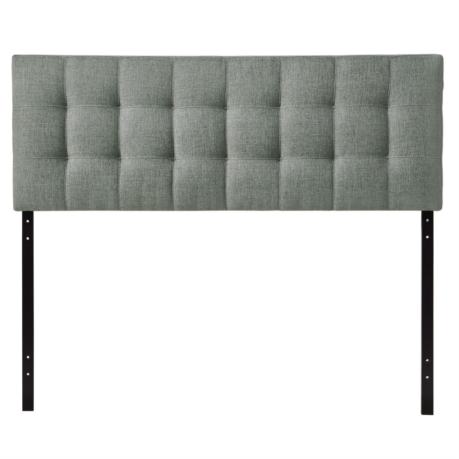 Introduce some boxy pizazz with the lavish design of this King size Grey Fabric Upholstered Headboard with Modern Tufting. Intended to be versatile for a wide range of modern bed styles, it's deep button tufting, and carefully aligned trim, present a uniform piece meant to cast prominence upon your room. Fully upholstered in padded fabric, it has a narrow piece meant to convey a strong sense of expansiveness within your entire surroundings. Set Includes: One - Headboard Product Dimensions: Overall Product Dimensions: 3.5"L x 61.5"W x 22.5"H Bedframe Mounting Location: 4.5 - 8.5"H Mounting Location A - Height to Top of Headboard: 52.5"H Mounting Location A - Height to Bottom of Headboard: 30.5"H Mounting Location B - Height to Top of Headboard: 50"H Mounting Location B - Height to Bottom of Headboard: 28"H Mounting Location C - Height to Top of Headboard: 47.5"H Mounting Location C - Height to Bottom of Headboard: 25.5"H Mounting Location D - Height to Top of Headboard: 45"H Mounting Location D - Height to Bottom of Headboard: 23"H Floor to Top of Headboard: 45.5 - 53"H Floor to Bottom of Headboard: 23 - 30.5"H.