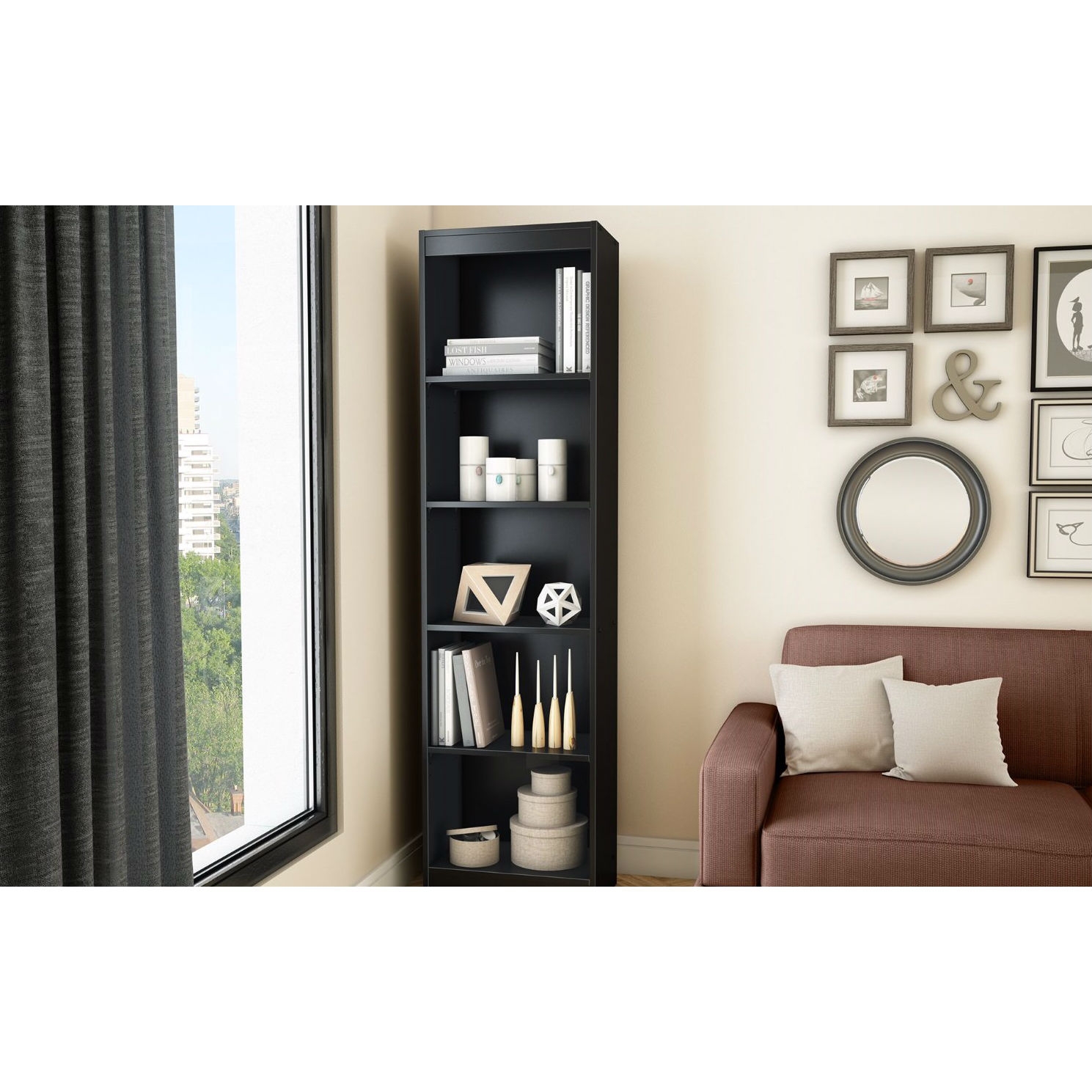 5-Shelf Narrow Bookcase Black Finish