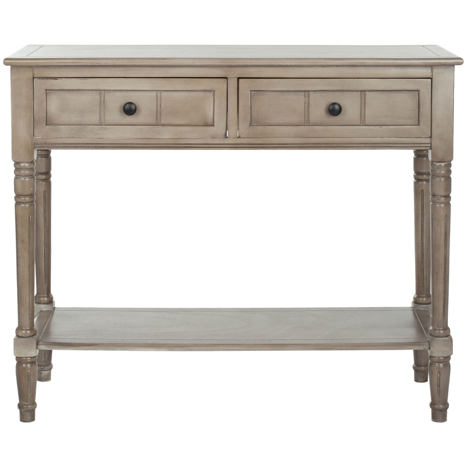 Bring maximum functionality to your home with this Console Accent Table Traditional Style Sofa Table in Distressed Cream. This spacious console table has a simple yet functional design, which makes it a great addition for any home. It has a robust structure which makes it a must have for any home. Made from solid wood, this console table is sturdy and durable. Its availability in various finishes helps you to select the correct color that match with your decor. This traditional rectangular table has a spacious top with two functional drawers and a large open shelf at the bottom. The top can accommodate a lampshade, books or any decorative items. The drawers have enough space to keep mails, stationery items, keys or other small yet necessary items. The drawers have round knobs for smooth functionality. The open shelf at the bottom can be used to either keep some books or any boxes or a tall vase. You can keep this table against a wall in the living room, bedroom, hall or den. The designed legs add elegance to the rest of the looks. This table is a beautiful piece to include in your decor. You can easily take care of this piece by wiping it clean with a cloth.